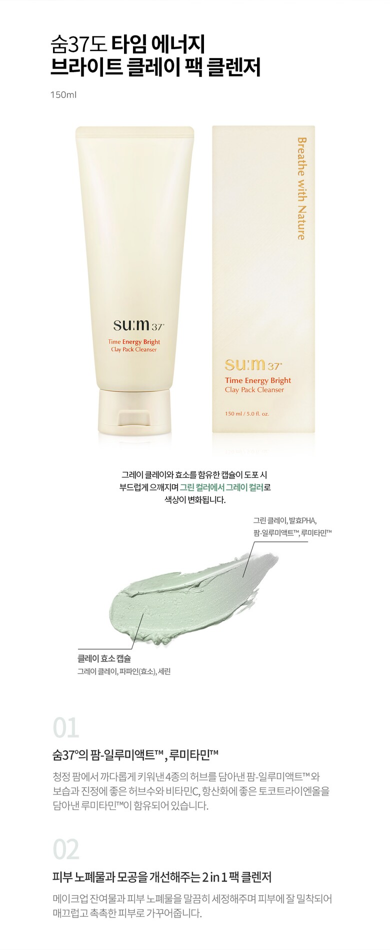숨37도 타임 에너지 브라이트 클레이 팩 클렌저 150ml