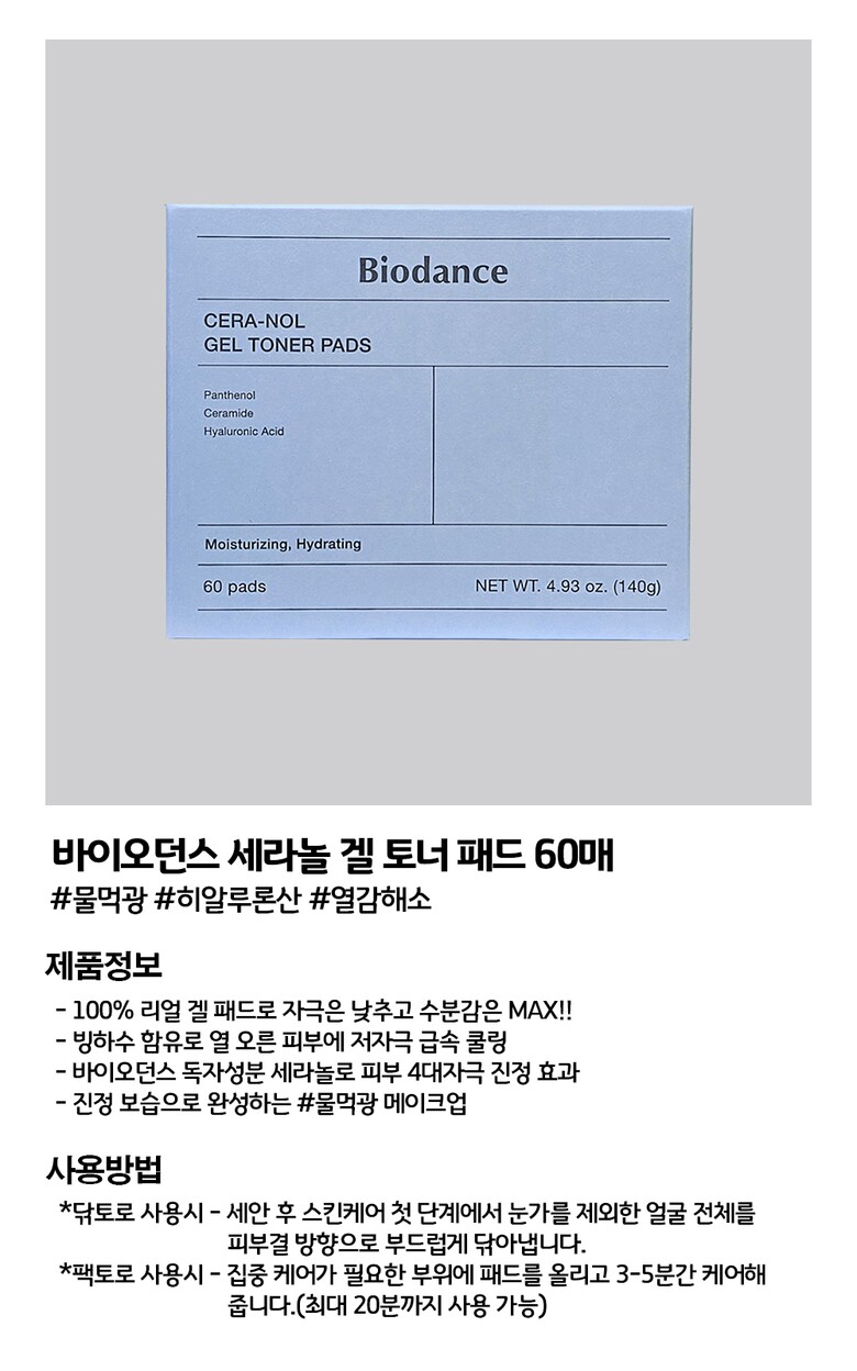 바이오던스 세라놀 겔 토너 패드 60매