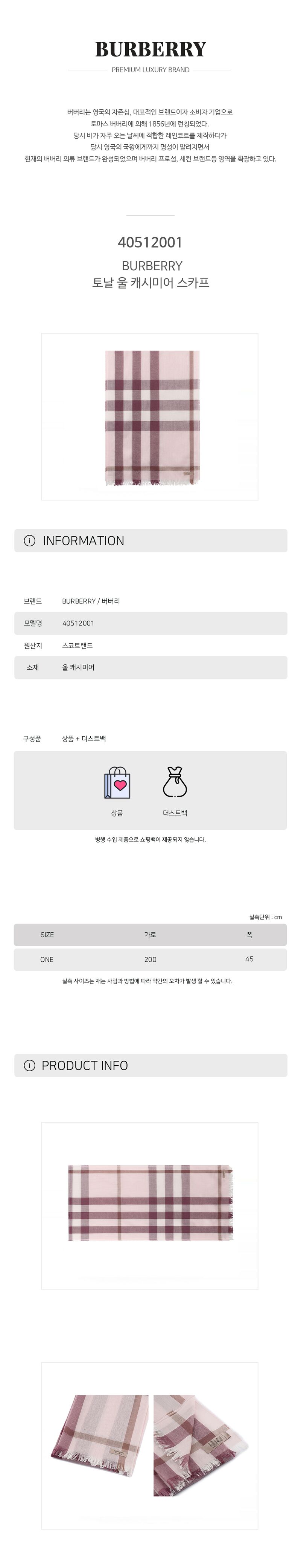 [명품] 버버리 토날 울 캐시미어 스카프/핑크/40512001