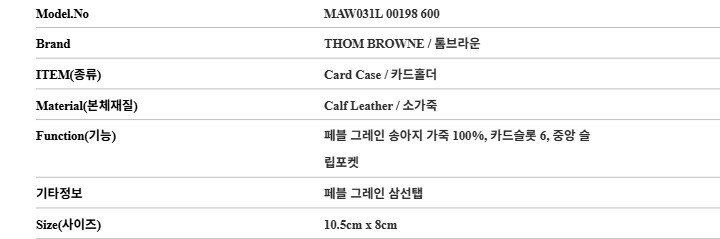톰브라운 지갑 MAW031L 00198 600 페블 그레인 삼선탭 남성카드지갑 당일발송