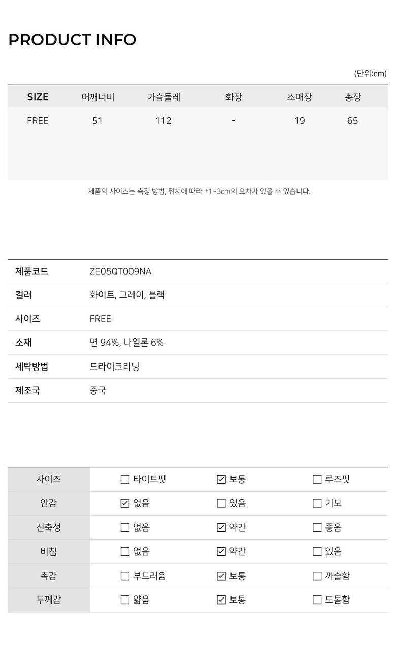 MODEL / 화이트,그레이,블랙(FREE) 착용