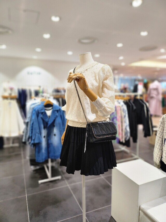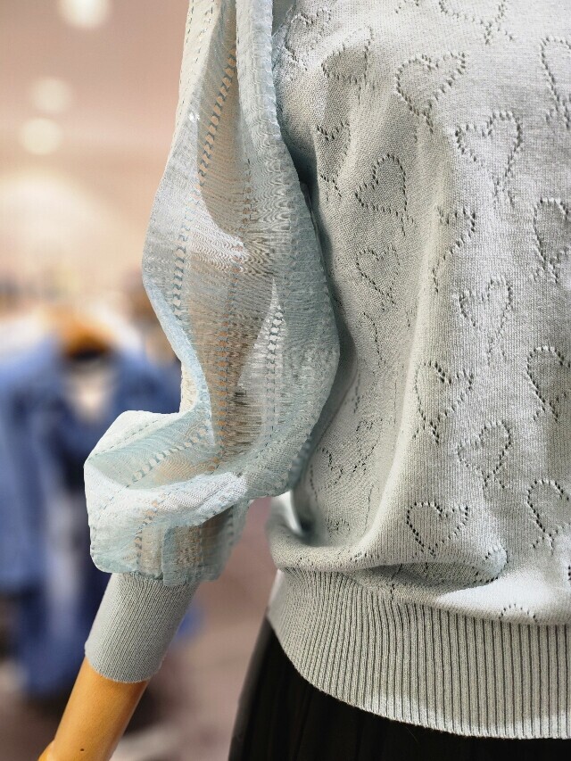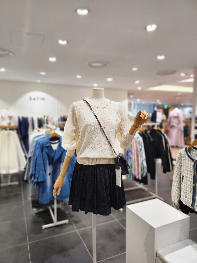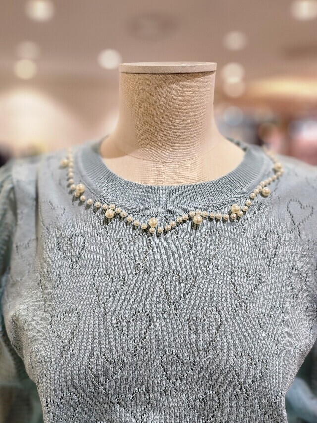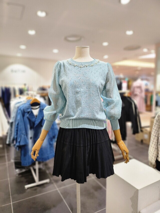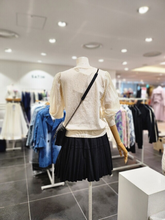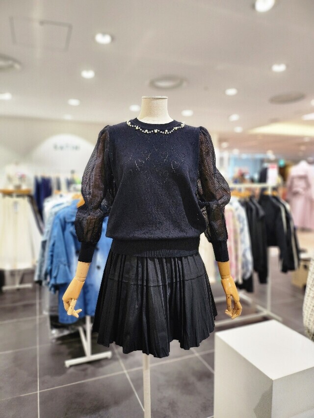 진주 넥 포인트 쉬폰소매 니트S252k983