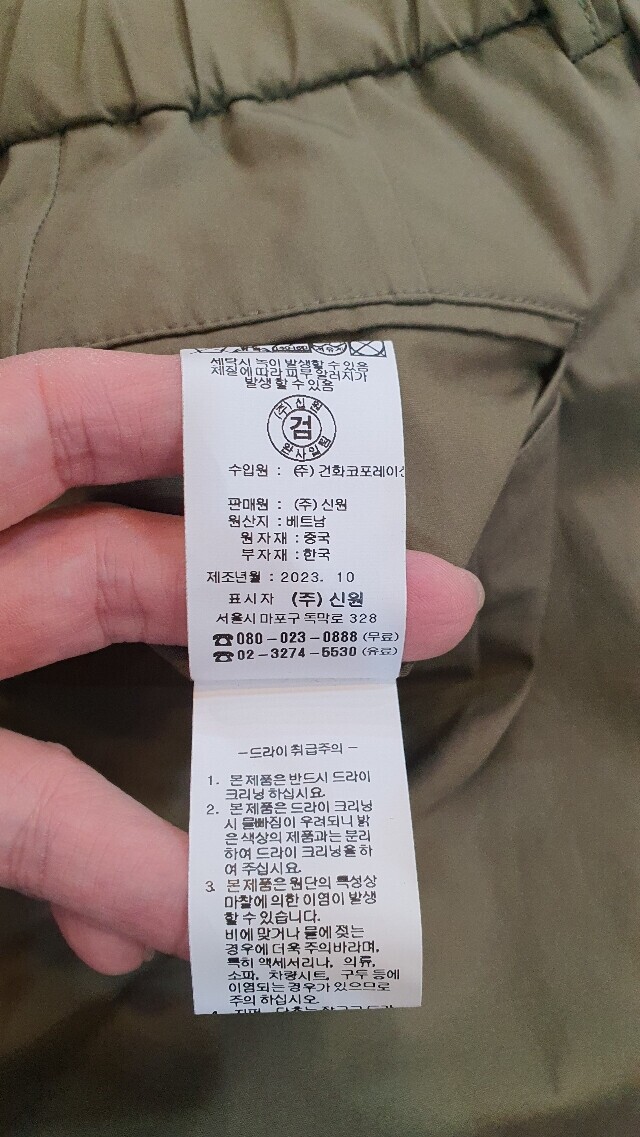 | 6. 세탁방법 및 취급시 주의사항 | 상품상세참조 |