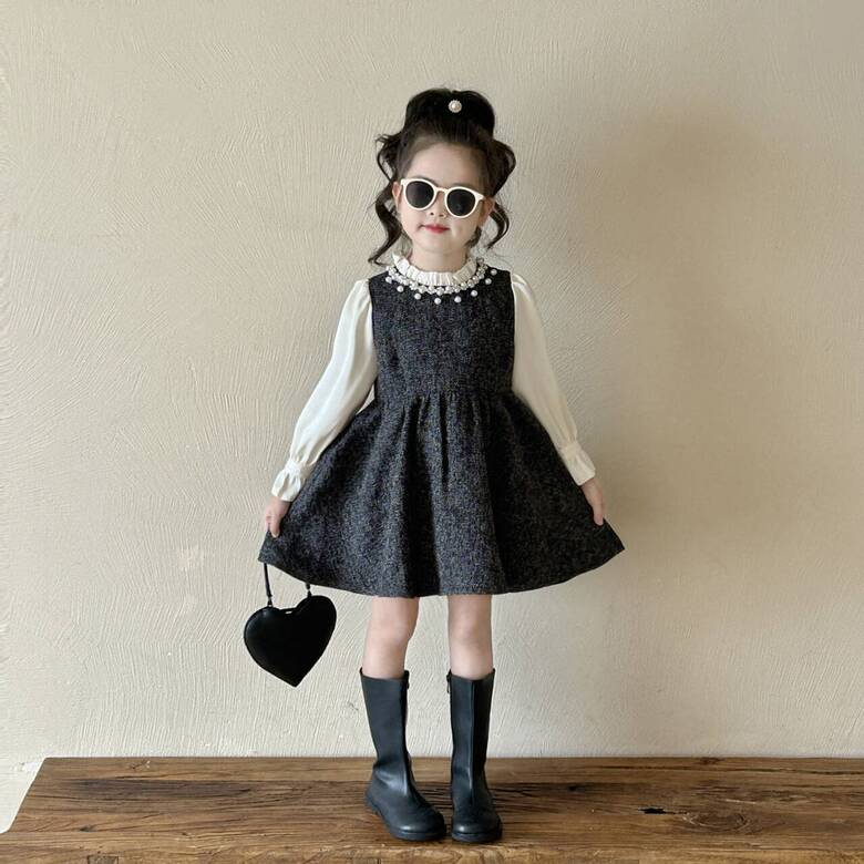 [예약발송] 진주 셔링 배색 플레어 원피스 R15419