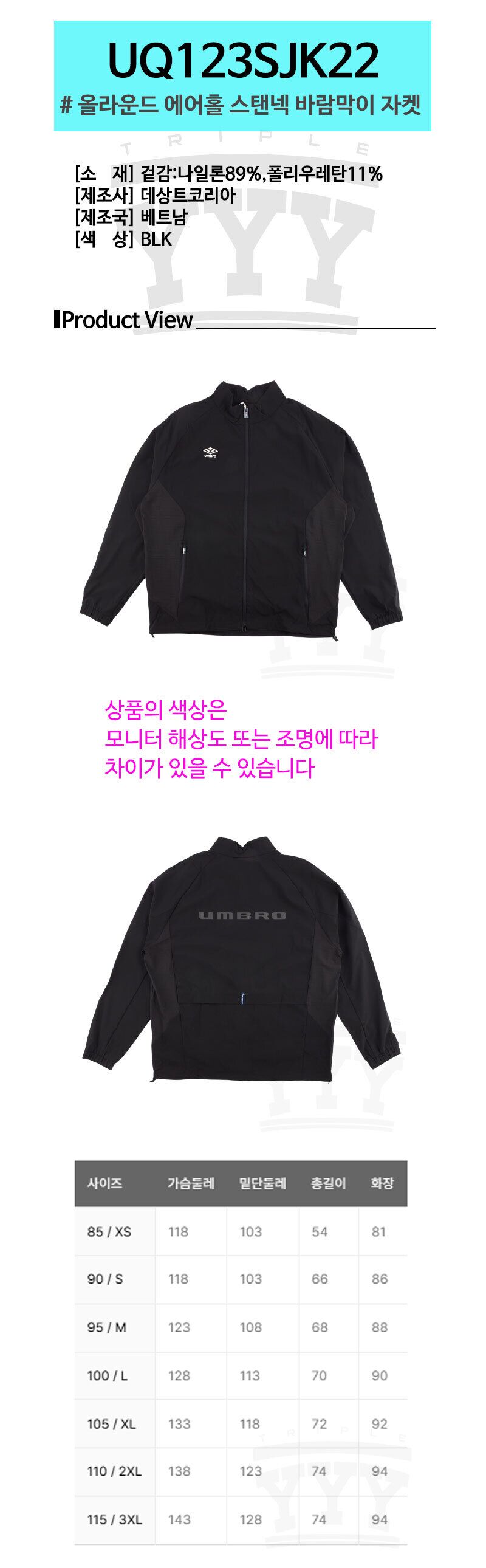 엄브로 올라운드 에어홀 스탠넥 바람막이 자켓 UQ123SJK22 BLK