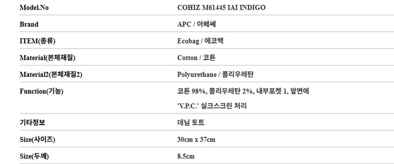 아페쎄 COHIZ M61445 IAI INDIGO LAURE 로르 데님 토트 에코백 가방